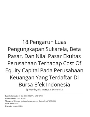 18. Turnitin_Pengaruh Luas Pengungkapan Sukarela, Beta Pasar, Dan Nilai Pasar Ekuitas Perusahaan Terhadap Cost Of Equity Capital Pada Perusahaan Keuangan Yang Terdaftar Di Bursa Efek Indonesia.pdf Download (3902Kb) | Preview |