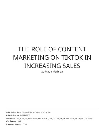 Gisha, Nadia and Malinda, Maya (2023) The Role of Content Marketing on Tiktok in Increasing Sales. In: The 2nd International Conference on Education, Innovation and Social Science, 2023, Surakarta.