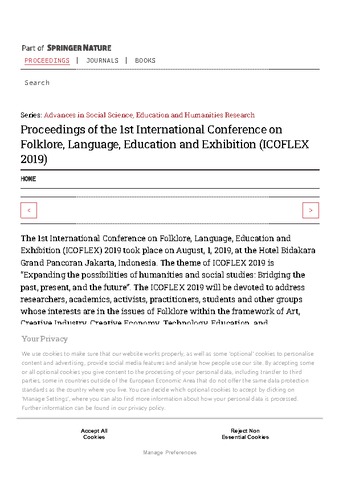 Woelandhary, Ayoeningsih Dyah and Pandanwangi, Ariesa and Damayanti, Nuning Yanti (2019) Expression and Visual Narration of The Jakarta Marunda Batik. 1st International Conference on Folklore, Language, Education and Exhibition (ICOFLEX 2019), 512. pp. 162-166. ISSN 2352-5398