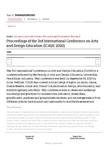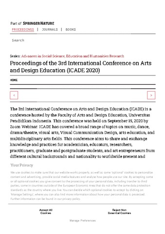 Pandanwangi, Ariesa and Dewi, Belinda Sukapura and Damayanti, Nuning Yanti and Apin, Arleti Mochtar (2021) The Impact of a Pandemic to be Strengthening Artist Tolerance in Facing C-19 Through Digital Art. Proceedings of the 3rd International Conference on Arts and Design Education (ICADE 2020), 519. pp. 83-87. ISSN 2352-5398