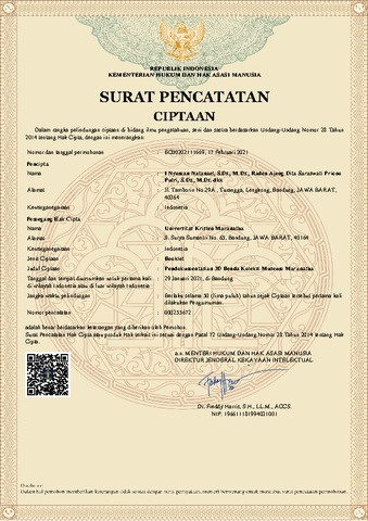 Sertifikat - Surat Tugas - HKI - 3D BENDA MUSEUM MARANATHA - I Nyoman Natanael.pdf Download (3327Kb) | Preview |