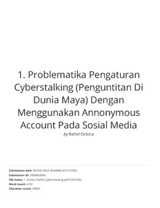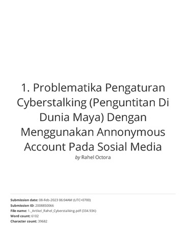1. Turnitin_Problematika Pengaturan Cyberstalking (Penguntitan Di Dunia Maya).pdf Download (3366Kb) | Preview |