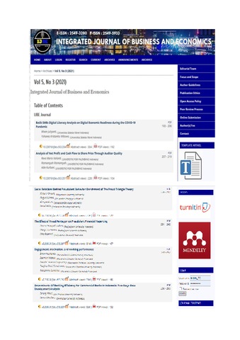 Hadianto, Bram and Wissen, Sabrina and Hapsariny, Renate Severita and Kurniawan, Shafira Putri and Carolina, Yosephine (2021) Engagement, Motivation, and Working Performance. Integrated Journal of Business and Economics, 5 (3). pp. 243-257. ISSN 2549-3280