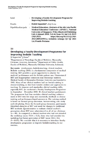 DEDEH SUPANTINI - Developing a Faculty Development Program for Improving bedside Teaching.pdf Download (1412Kb) | Preview |