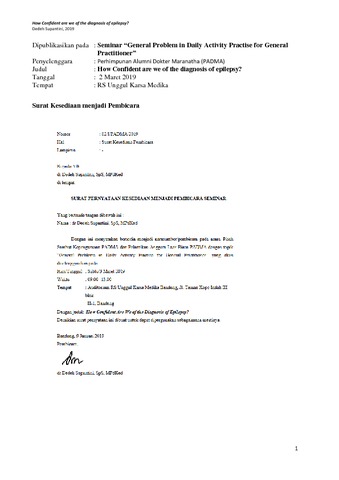Supantini, Dedeh (2019) How Confident are we of the diagnosis of epilepsy? In: Seminar "General Problem in Daily Activity Practice for General Practicioner", 2 Maret 2019, Bandung.