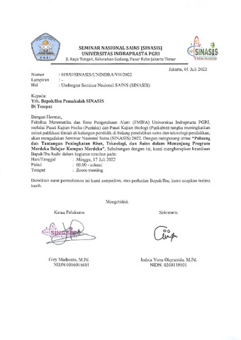 Putra, Luckiantoro Rangga Dwi and Tallar, Robby Yussac (2022) Peranan Program MBKM Dalam Pendidikan Teknik Sipil dan Kontribusinya Pada Dunia Kerja. In: Seminar Nasional Sains 2022: Peluang dan Tantangan Peningkatan Riset, Teknologi dan Sains dalam Menunjang Program Merdeka Belajar Kampus Merdeka, 17 Juli 2022, Jakarta.