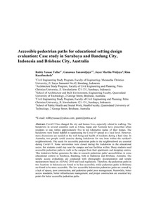 Covid-19 has changed the city and human lives, especially related to walking. The lockdowns in several countries such as China, Japan and Australia have prescribed urban residents to stay within approximately five to ten kilometres radius of their homes. The lockdowns were found helpful in suppressing the Covid-19 spread at a local level. However, more discussions are needed on the well-being and health of residents during a hard time. In Australia, two people could exercise during lockdowns for one hour within the resident's neighbourhoods. The needs for accessible pedestrian paths in the neighbourhood are essential during Covid-19. Some universities were closed during the lockdowns in the educational sector, but students could stay near the campus and use facilities within. Many students need accessible pedestrian paths to walk to the campus from their apartments and shopping centres. This lockdown further generates the idea to research pedestrian paths' accessibilities in some educational context in Surabaya, Bandung, both in Indonesia and Brisbane, Australia. The simple access evaluations are conducted with photography documentation and simple measurement based on ADAAG 2010 and local regulations. Therefore, the pedestrian paths in two locations in Indonesia are found to be less accessible, while pedestrian paths in Brisbane are found to be more accessible. The less accessible Indonesian pedestrian paths are caused by a lack of spaces, poor construction, and pedestrian paths' poor management. Meanwhile, better access standards, better infrastructure management, and proper construction are essential key points for better accessible pedestrian paths.