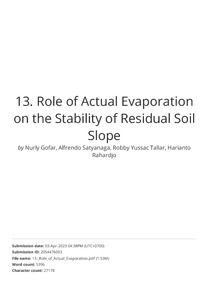 13. Turnitin_Role of Actual Evaporation on the Stability of Residual Soil Slope.pdf Download (2782Kb) | Preview |