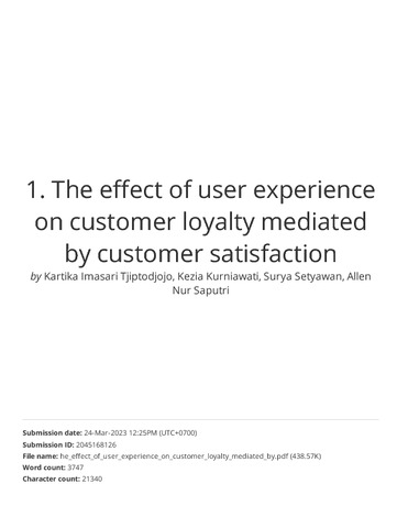 Imasari, Kartika and Kurniawati, Kezia and Setyawan, Surya and Saputri, Allen Nur (2023) The Effect of User Experience on Customer Loyalty Mediated by Customer Satisfaction. Enrichment: Journal of Management, 12 (6). pp. 5296-5302. ISSN 2721-7787