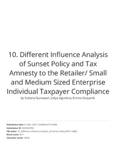 Turnitin_Different Influence Analysis of Sunset Policy and Tax Amnesty to the Retailer_ Small and Medium Sized Enterprise Individual Taxpayer Compliance.pdf