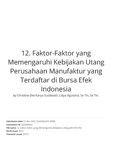 Turnitin_Faktor-Faktor yang Memengaruhi Kebijakan Utang Perusahaan Manufaktur yang Terdaftar di Bursa Efek Indonesia.pdf Download (2491Kb) | Preview |