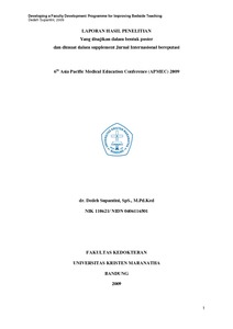 Supantini, Dedeh and Ivone, July (2009) Developing a Faculty Development Programme for Improving Bedside Teaching. In: 6th Asia Pacific Medical Education Conference (APMEC) 2009, Singapore.