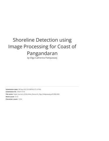Pattipawaej, Olga Catherina (2022) Shoreline Detection using Image Processing for Coast of Pangandaran. Journal of Maritime Research, XIX (II). pp. 16-21. ISSN 1697-4840