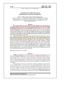 Kerja sebagai aktivitas yang secara sengaja dan berguna dilakukan manusia untuk menjamin kelangsungan hidupnya. Salah satu modal untuk mencapai keberhasilan kerja adalah kemampuan berkonsentrasi. Ada banyak faktor yang mempengaruhi konsentrasi, salah satu diantaranya adalah kondisi lingkungan fisik, dalam hal ini yaitu getaran. Banyak pekerja yang dalam keseharian mengalami getaran pada saat bekerja, misalnya pekerja pengeboran, supir, dsb. Tubuh membutuhkan energi untuk menetralkan getaran. Hal ini dapat menyebabkan kelelahan dini, juga dapat mengganggu konsentrasi kerja. Oleh karena itu, perlu dilakukan penelitian untuk mengetahui sampai sejauhmana getaran dapat mempengaruhi konsentrasi dan adakah perbedaan antara getaran yang bersifat kontinu dengan getaran yang terjadi secara mendadak. Tahap awal penelitian diawali dengan pembuatan lantai getar dan perancangan 5 skenario pekerjaan (tanpa getaran, getaran ±8Hz, getaran ±10Hz, getaran ±13Hz, dan getaran yang muncul tiba�tiba). Selanjutnya dilakukan pemilihan responden yang harus memenuhi spesifikasi tertentu. Responden harus menyebutkan 60 warna yang tertera di layar untuk setiap skenario. Pengukuran konsentrasi dilakukan dengan menghitung jumlah kesalahan yang dibuat. Pengamatan dilakukan selama 2 hari. Hari pertama dilakukan pengambilan data skenario 1,3,dan 5. Hari kedua dilakukan pengambilan data skenario 2 dan 4. Setelah data terkumpul, dilakukan uji statistik non parametrik. Hasilnya menunjukkan bahwa tidak terdapat perbedaan antara skenario 1 dengan skenario 3, juga antara skenario 2 dengan skenario 4. Namun terdapat perbedaan skenario 1 dengan skenario 5 maupun skenario 3 dengan skenario 5. Hal ini menunjukkan bahwa getaran sampai dengan batas ± 13Hz tidak mempengaruhi konsentrasi. Namun getaran yang muncul tiba-tiba akan menimbulkan kesalahan yang lebih banyak dibandingkan getaran yang sifatnya kontinu.