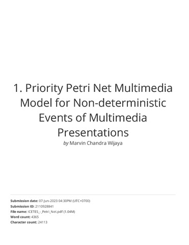 Wijaya, Marvin Chandra (2021) Priority Petri Net Multimedia Model for Non-deterministic Events of Multimedia Presentations. In: 1st International Conference on Emerging Issues in Technology, Engineering and Science, Bandung, July 1-2, 2021.