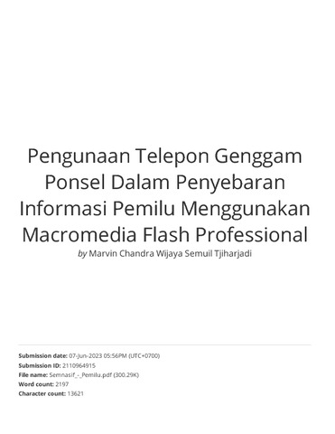 2. Turnitin_Pengunaan Telepon Genggam Ponsel Dalam Penyebaran Informasi Pemilu Menggunakan Macromedia Flash Professional.pdf Download (2316Kb) | Preview |