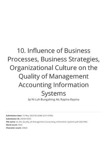 10. Turnitin_Influence of Business Processes, Business Strategies, Organizational Culture on the Quality of Management Accounting Information Systems.pdf Download (2077Kb) | Preview |