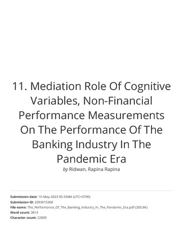 11. Turnitin_Mediation Role Of Cognitive Variables, Non-Financial Performance Measurements On The Performance Of The Banking Industry In The Pandemic Era.pdf