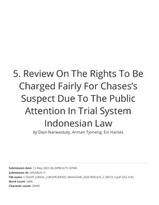 Narwastuty, Dian and Tjoneng, Arman and Hanias, Evi (2021) Review on the Rights to be Charged Fairly for Chases's Suspect Due To the Public Attention in Trial System Indonesian Law. Jurisprudentie, 8 (1). pp. 22-33. ISSN 2580-5738