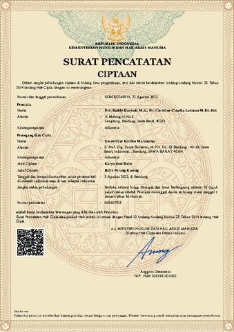 Universitas Kristen Maranatha, Heddy Heryadi, Christine Claudia Lukman, Monica Hartanti, Maya Malinda, Christianna Sekarkinanthi Hertadimas, Rudi Siswanto (2023) Batik Perang Kuning. 000502928.