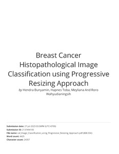 Bunyamin, Hendra and Toba, Hapnes and Meyliana, Meyliana and Wahyudianingsih, Roro (2021) Breast Cancer Histopathological Image Classification using Progressive Resizing Approach. In: 1st International Conference on Emerging Issues in Technology, Engineering and Science, Bandung, July 1-2, 2021.
