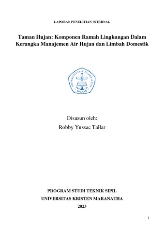 Tallar, Robby Yussac (2023) Taman Hujan: Komponen Ramah Lingkungan Dalam Kerangka Manajemen Air Hujan dan Limbah Domestik. Project Report. Universitas Kristen Maranatha. (Unpublished)