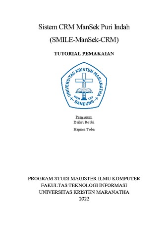 Universitas Kristen Maranatha, Hapnes Toba, Dzikri Robbi, Hendra Gunawan (2022) Sistem CRM ManSek Puri Indah (SMILE-ManSek-CRM). 000368683.