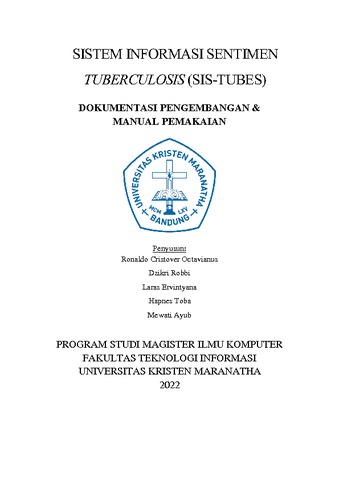 Universitas Kristen Maranatha, Hapnes Toba, Mewati Ayub, Ronaldo Cristover Octavianus, Dzikri Robbi, Laras Ervintyana (2022) Sistem Informasi Sentimen Tuberculosis (Sis-Tubes). 000350405.