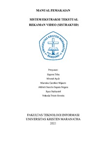 Universitas Kristen Maranatha, Hapnes Toba, Mewati Ayub, Maresha Caroline Wijanto, Aldrich Sancho Sapata Negara, Ryan Nathaniel, Yolanda Trixie Hernita (2021) Sistem Ekstraksi Tekstual Rekaman Video (SISTRAKVID). 000269306.