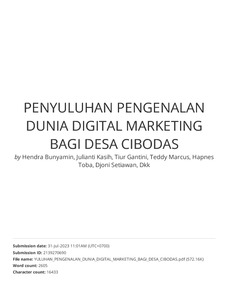 Bunyamin, Hendra and Kasih, Julianti and Gantini, Tiur and Marcus, Teddy and Toba, Hapnes and Setiawan, Djoni and Vieri, Rolando (2022) Penyuluhan Pengenalan Dunia Digital Marketing bagi Desa Cibodas. Aptekmas: Jurnal Pengabdian kepada Masyarakat, 5 (2). pp. 78-84. ISSN 2622-5646