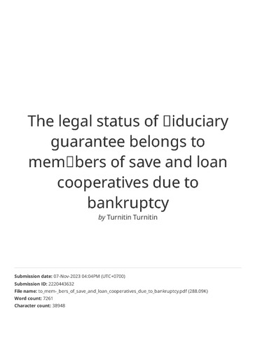 The Legal Status of Fiduciary Guarantee Belongs to Members of Save and Loan Cooperatives due to Bankruptcy.