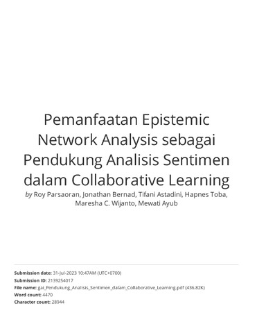 Turnitin_ Pemanfaatan Epistemic Network Analysis sebagai Pendukung Analisis Sentimen dalam Collaborative Learning.pdf Download (2405Kb) | Preview |