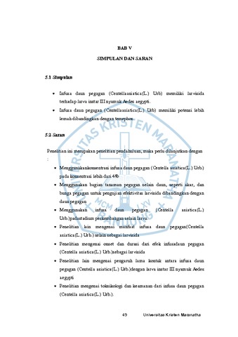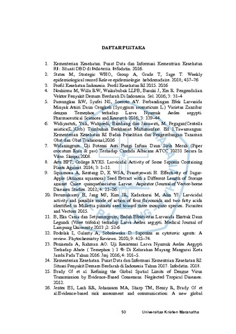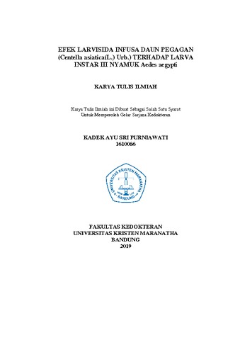 Purniawaty, Kadek Ayu Sri (2019) Efek Larvisida Infusa Daun Pegagan (Centella Asiatica(L.) Urb.) terhadap Larva Instar III Nyamuk Aedes Aegypti. Undergraduate thesis, Universitas Kristen Maranatha.