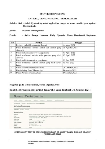 BUKTI KORESPONDENSI JURNAL Odonto 2022_ 9(2).pdf Download (542Kb) | Preview |