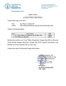Santoso, Agustine H. and Kintawati, Silvi and Sugiaman, Vinna K. (2022) Effect of Resorbable Collagen Plug (RCP) on Extraction Wound Healing. e-Gigi, 10 (1). pp. 81-87. ISSN 2338-199X