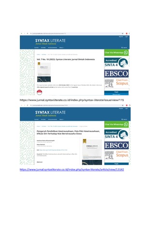 Winastiningsih, Andriana Ratna and Malinda, Maya (2022) Pengaruh Pendidikan Kewirausahaan, Pola Pikir Kewirausahaan, Efikasi Diri terhadap Niat Berwirausaha Siswa. Syntax Literate: Jurnal Ilmiah Indonesia, 7 (2). pp. 17620-17639. ISSN 2548-1398