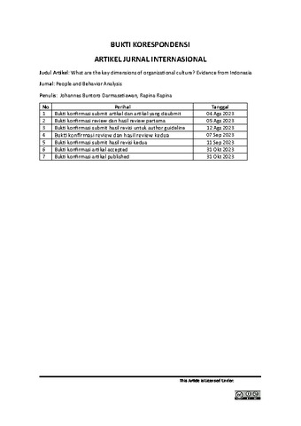 Darmasetiawan, Johannes Buntoro and Rapina, Rapina (2023) What are the Key Dimensions of Organizational Culture? Evidence from Indonesia. People and Behavior Analysis, 1 (2). ISSN 2986-9803