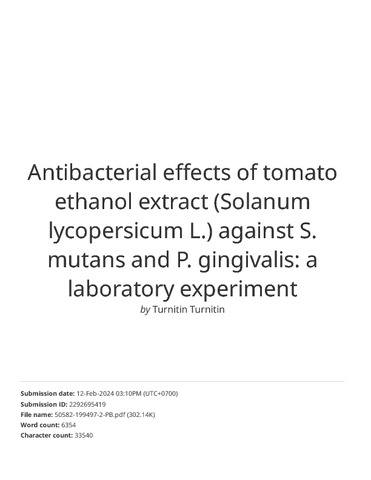 34. Turnitin- Antibacterial effects of tomato ethanol extract (Solanum lycopersicum L.) against S. mutans and P. gingivalis_ a laboratory experiment.pdf Download (2296Kb) | Preview |