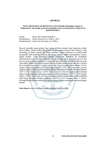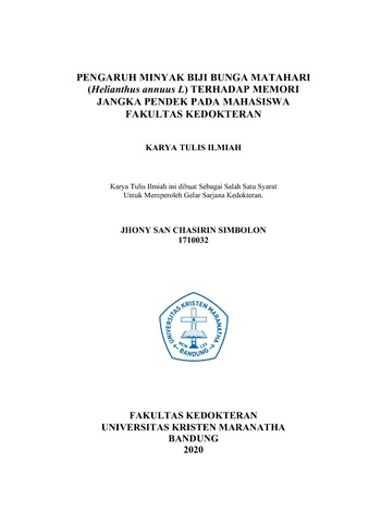 Simbolon, Jhony San Chasirin (2020) Pengaruh Minyak Biji Bunga Matahari (Helianthus annuus L) Terhadap Memori Jangka Pendek pada Mahasiswa Fakultas Kedokteran. Undergraduate thesis, Universitas Kristen Maranatha.