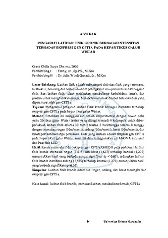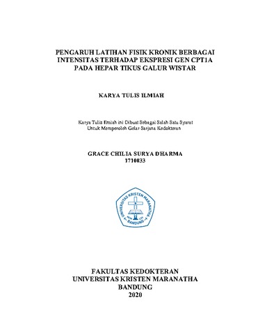 Dharma, Grace Chilia Surya (2020) Pengaruh Latihan Fisik Kronik Berbagai Intensitas Terhadap Ekspresi Gen Cpt1A Pada Hepar Tikus Galur Wistar. Undergraduate thesis, Universitas Kristen Maranatha.
