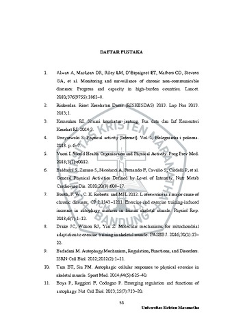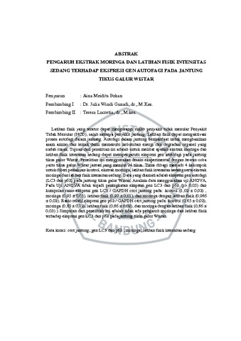 Pohan, Aina Meidita (2020) Pengaruh Ekstrak Moringa dan Latihan Fisik Intensitas Sedang Terhadap Ekspresi Gen Autofagi Pada Jantung Tikus Galur Wistar. Undergraduate thesis, Universitas Kristen Maranatha.