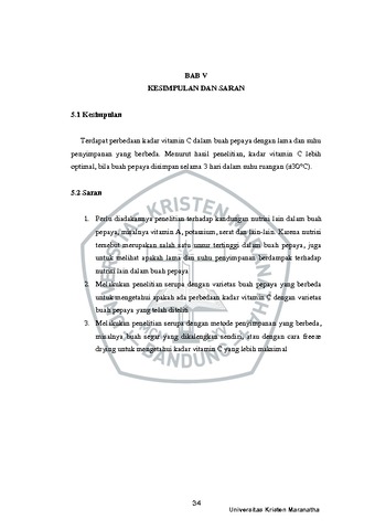 Evredy, Evredy (2021) Pengaruh Lama dan Suhu Penyimpanan Terhadap Kadar Vitamin C Dalam Buah Pepaya (Carica papaya L.). Undergraduate thesis, Universitas Kristen Maranatha.