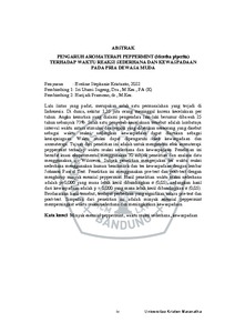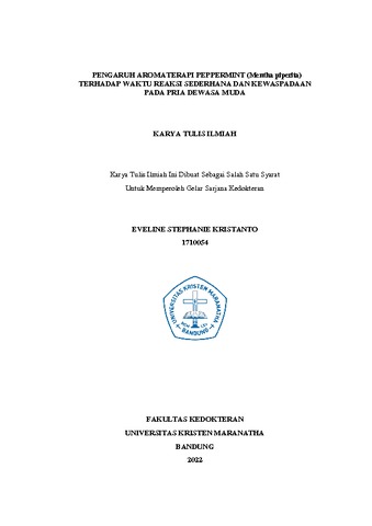 Kristanto, Eveline Stephanie (2022) Pengaruh Aromaterapi Peppermint (Mentha piperita) Terhadap Waktu Reaksi Sederhana Dan Kewaspadaan Pada Pria Dewasa Muda. Undergraduate thesis, Universitas Kristen Maranatha.