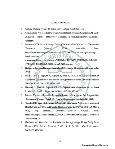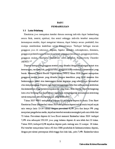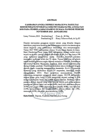 Victoria, Liony (2022) Gambaran Angka Depresi Mahasiswa Fakultas Kedokteran Universitas Kristen Maranatha Angkatan 2018 Pada Pembelajaran Daring Di Masa Pandemi Periode November 2021- Januari 2022. Undergraduate thesis, Universitas Kristen Maranatha.