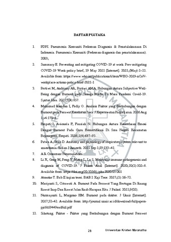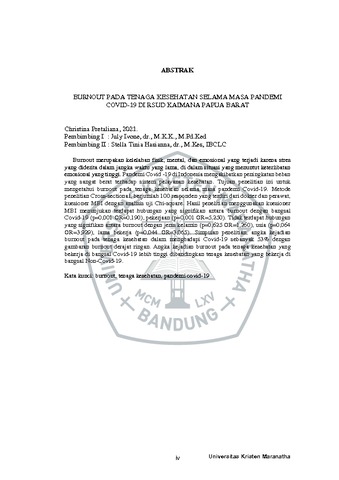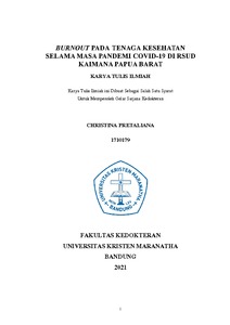Pretaliana, Christina (2021) Burnout Pada Tenaga Kesehatan Selama Masa Pandemi Covid-19 Di Rsud Kaimana Papua Barat. Undergraduate thesis, Universitas Kristen Maranatha.