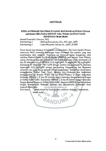 Guswara, Arnold Pramudita (2021) Efek Antidiare Ekstrak Etanol Biji Buah Alpukat (Persea Americana Mill.) Pada Mencit Swiss Webster Jantan Yang Diinduksi Oleum Ricini. Undergraduate thesis, Universitas Kristen Maranatha.