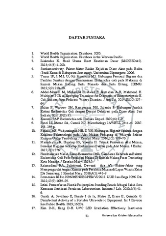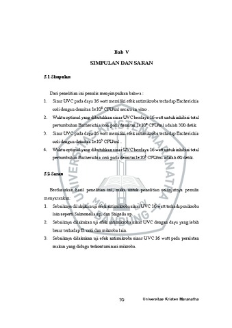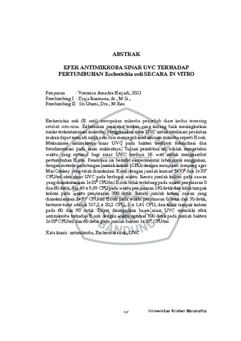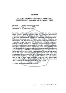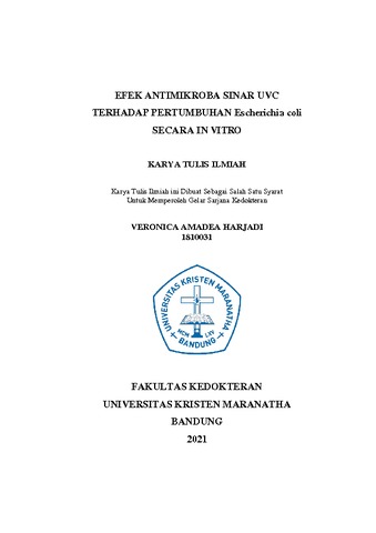 Harjadi, Veronica Amadea (2021) "Efek Antimikroba Sinar Uvc Terhadap Pertumbuhan Escherichia Coli Secara In Vitro". Undergraduate thesis, Universitas Kristen Maranatha.