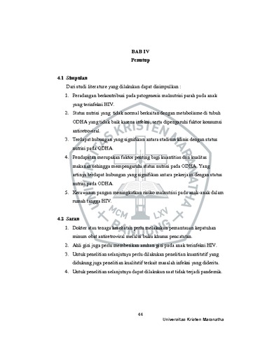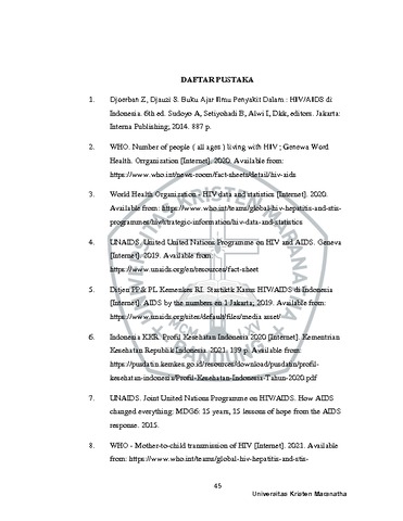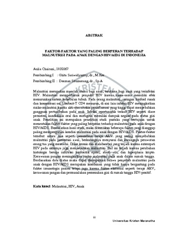 Chairani, Aulia (2022) Faktor-Faktor Yang Paling Berperan Terhadap Malnutrisi Pada Anak Dengan Hiv/Aids Di Indonesia. Undergraduate thesis, Universitas Kristen Maranatha.