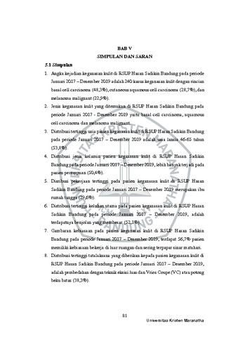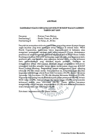 Mutiara, Evelyna Vania (2022) Gambaran Kasus Keganasan Kulit Di Rsup Hasan Sadikin Tahun 2017-2019. Undergraduate thesis, Universitas Kristen Maranatha.