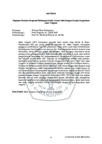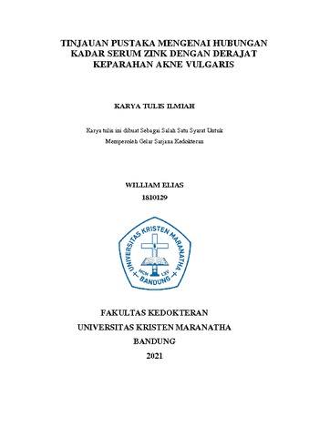 Pandapotan, William Elias (2022) Tinjauan Pustaka Mengenai Hubungan Kadar Serum Zink Dengan Derajat Keparahan Akne Vulgaris. Undergraduate thesis, Universitas Kristen Maranatha.